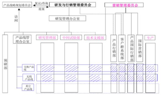 IPD流程的核心在于:“产品研发是基于市场创新,是一种投资行为”。研发不应该只是技术部门的职责,而是跨部门协同的结果。IPD变革下的矩阵架构与此前的研发系统的矩阵架构完全不同,突出体现的是技术部门与其他部门协同研发。