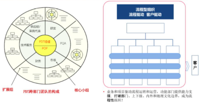 4、无论是IPD或LTC,组织变革都伴随着流程与组织的协同,流程体现业务本质,流程的实现,同样需要辅以合适的组织架构,以及在此基础上附着的细胞组织的运用,比如PDT或铁三角。