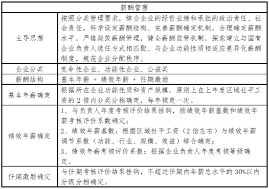 《关于深化省管企业负责人薪酬制度改革的实施意见》(2020年),强调以组织任命的省管企业负责人为改革重点,同时对省管企业市场化选聘的职业经理人实行市场化薪酬分配机制。