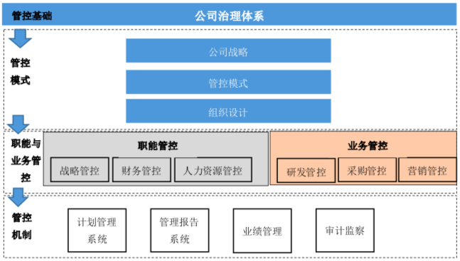 同时,管控制度和管控流程也是管控体系中不可或缺的环节,只有建立和完善管控制度和流程才能真正较好的实施集团对下属企业的管控。
