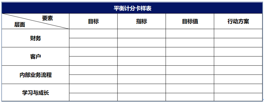 指标体系之间的平衡关系:长期战略目标与短期财务目标、非财务目标与财务目标、领先指标与滞后指标、动因指标与结果指标等。