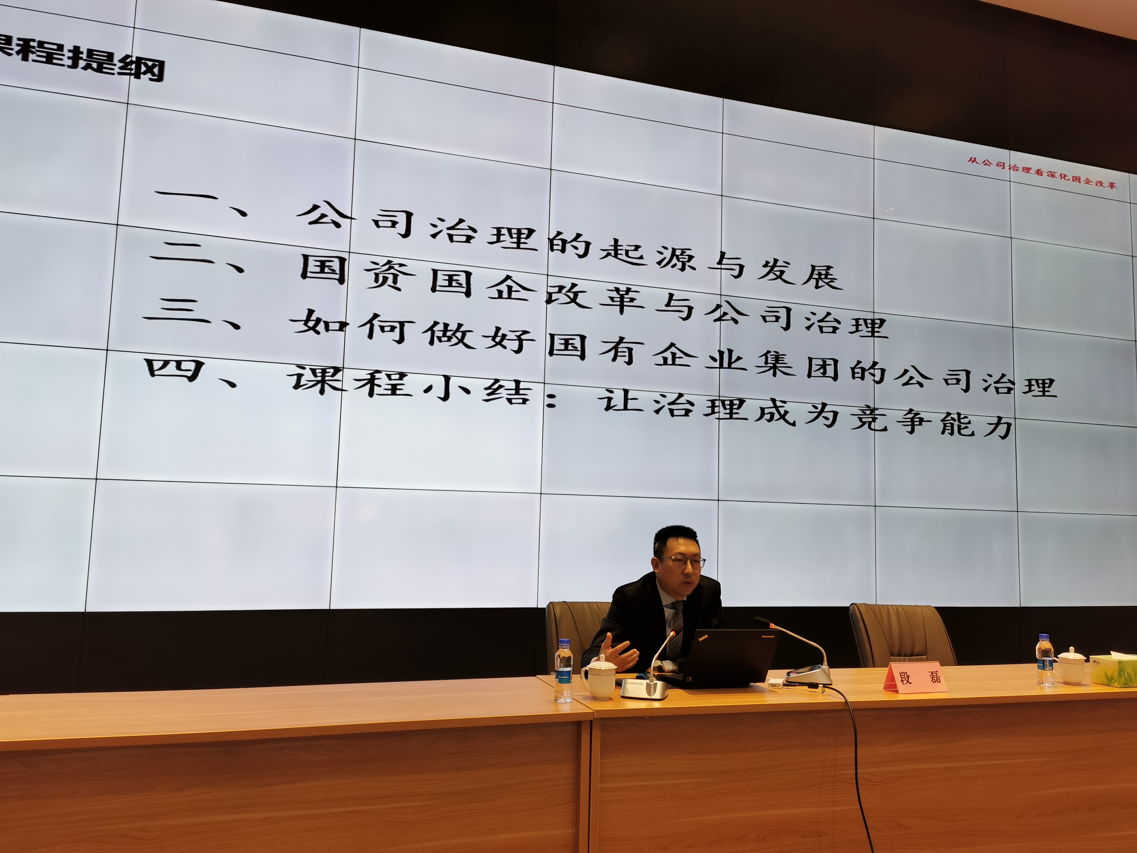 27日上午,首席专家段磊博士应邀为北京城市副中心投资建设集团公司(简称:北投集团)开展《从公司治理看深化国企改革》的专题培训,本次培训是北投集团十九届五中全会系列培训中的一个版块,集团全体中高层领导,所属全资、控股及参股企业的管理层一百多人参加了本次培训。