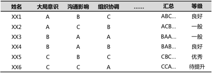 在能力维度,由被盘点对象的周边人员或专业的人才测评师,通过定性或定量的方式进行评价,最终得到被盘点对象的能力等级。