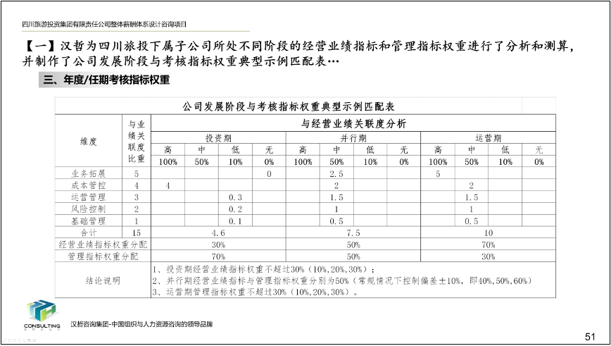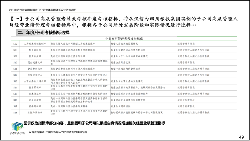 2、优化子公司高层领导班子经营业绩考核办法。根据各子公司的行业特点、业务定位和所处发展阶段,拟定了子公司高层领导班子经营业绩考核指标库,以及相应的指标选择方法和权重测算方法,确保考核指标符合子公司所处发展阶段,提高激励作用,保障集团战略目标的实现。
