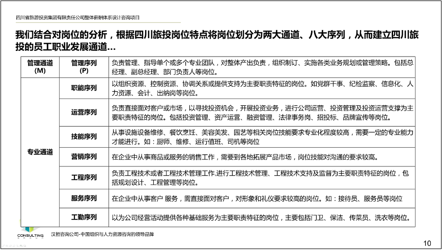 3、优化职业发展通道。根据集团人才发展现状、现有职业发展通道情况以及人岗匹配程度,建立岗位入职标准,对现有人员岗位能力进行分析匹配,并设计管理和专业双通道,建立配套的评价机制和人才培养机制,提高人岗匹配程度以及人才市场化程度,进而加强集团的市场化竞争水平。