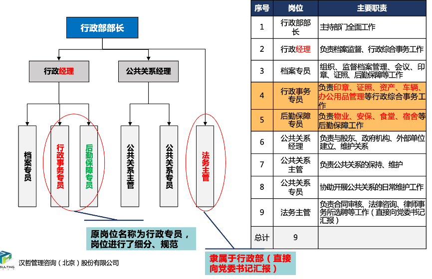根据组织职能,对各部门的岗位进行梳理,明确各部门的岗位清单以及各岗位需要承担的主要职责。