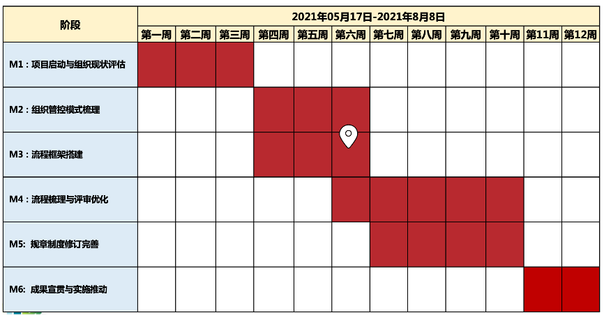 基于上述问题,项目需要完成的包括:(1)梳理组织及岗位职责;(2)搭建流程体系;(3)搭建制度体系;(4)完善内控体系。