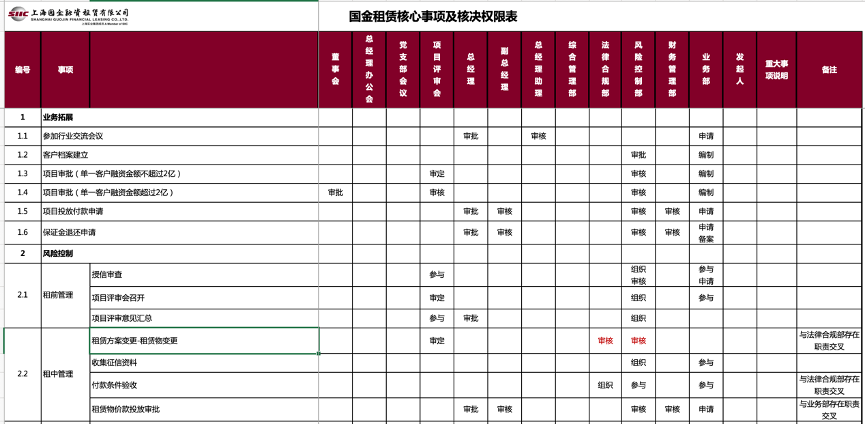 对公司各项管理活动涉及的部门和相应的决策会议进行权限梳理,明确相应的权限