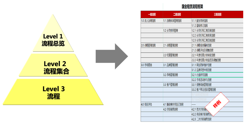 搭建分类流程体系框架,梳理流程总图,确保最终的流程体系能够支撑公司业务发展。