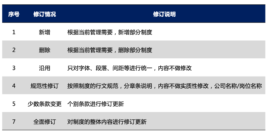项目组同时对公司所有的制度进行评估、修订、完善,确保公司当前所有的制度符合公司管理实际。