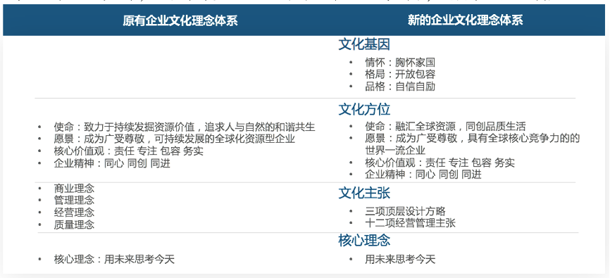项目组通过认真细致的调研诊断,在企业原有企业文化理念体系基础上,通过对既有文化中优秀元素的继承、完善和创新提升,最终形成了新的企业文化理念体系,和原有理念体系相比,新的体系中既保留了原有文化中的优秀元素,也在原有基础上融入了时代特征和发展要求,更具系统性和前瞻性。