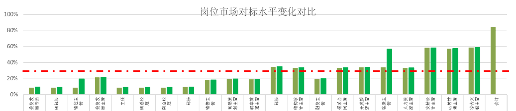 1、薪酬设计,通过市场对标,各岗位的水平有了明显的提高,如下图所示: