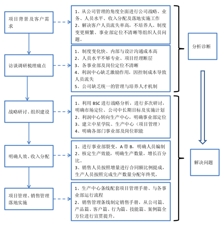 项目按照战略及组织调整已经完成落地,战略中知识管理、培训工作、股权激励也已经成功续单。