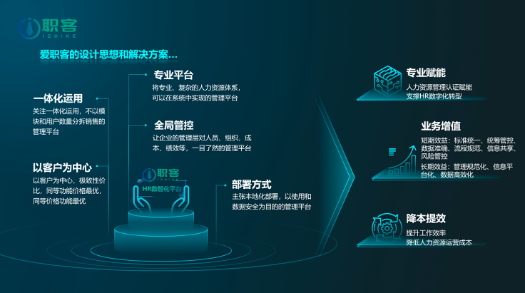 作为国内专业人力资源咨询机构-伟德国际betvlctor1946咨询倾力打造的数字化平台,伟德国际betvlctor1946i职客具有无可比拟的人力资源管理业务的专业性,在绩效管理、任职资格等模块的深度和灵活性方面卓然不同;充分考虑企业对于信息安全的关注,积极推进本地化部署方式;打破传统软件产品分模块、分用户的收费方式,采用全模块部署、一体化运营方式。为了推进企业人才管理数字化的步伐,伟德国际betvlctor1946数科对于本集团的咨询服务客户群体,采用了远低于市场的价格,以及“咨询+软件实施+运维服务”的一体化服务模式,更好地解决了人力资源管理理念、管理方法与落地应用的有机关联。