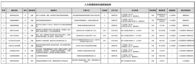 如下指标为人力资源部绩效指标设计部门内容,读者可进行一定的参考。