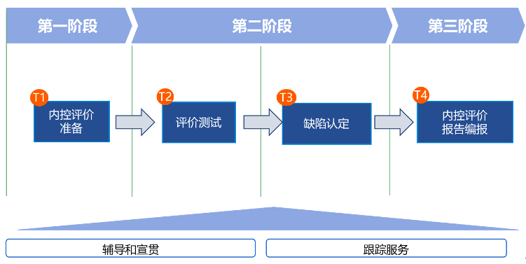 评价实施阶段主要工作:开展内控调研,审阅流程制度文件,访谈领导及关键岗位人员,梳理现有内控及风险管理要求,分析其对企业内部控制基本规范、全面风险管理指引的遵循性,评估内控流程设计有效性;针对重点业务开展穿行测试和抽样测试,评估内控流程执行有效性;内控缺陷梳理和认定,梳理内控缺陷和问题,分析产生原因和影响,根据缺陷认定标准确定内控缺陷,编制内控缺陷汇总表,与客户进行沟通确认。