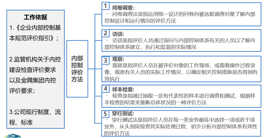 根据财政部等5部委《企业内部控制基本规范》、《企业内部控制应用指引》、投资物业管理集团《内部控制手册》及投资物业管理集团《内部控制评价办法》的相关要求,遵循全面性、重要性、客观性、独立性、及时性原则,以风险为导向,围绕内部环境、风险评估、控制活动、信息与沟通、内部监督等要素,对该公司评价范围内2021年度内部控制设计及运行情况进行全面检查评价,并在此基础上关注重要业务、重点领域和高风险领域,准确揭示经营管理的风险状况,对内部控制缺陷进行认定,对内部控制设计缺陷、执行缺陷和控制不到位等问题提出整改措施和管理建议,如实反映内部控制设计与运行的有效性,提供评价工作底稿,形成评价结论。