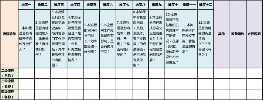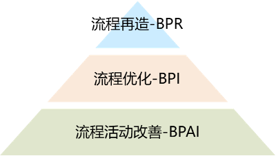 1、流程优化层级,根据流程改进的程度分为三个层级: