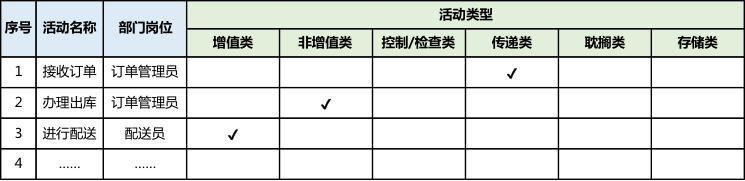② 非增值活动,对业务没有起到关键作用的活动,可分为必须存在的活动和可以删除的活动;