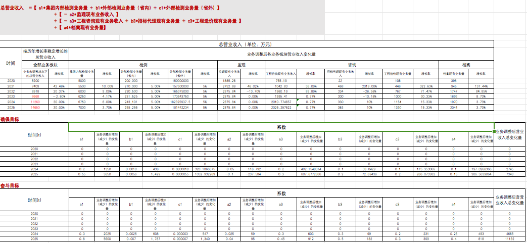 项目组根据集团要求制定了2035年的远景目标,提出了到2035年,公司实现“10101”目标,即营业收入上10亿元,资产规模上10亿元,利润总额上1亿元。在此基础上,项目组根据各项业务特征,结合相关数学理论,创新性的设计了目标预测模型,为公司战略目标预测奠定了理论和工具基础。
