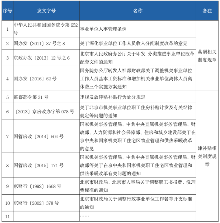 2. 目前国家、北京市对于事业单位薪酬及津补贴政策如下;