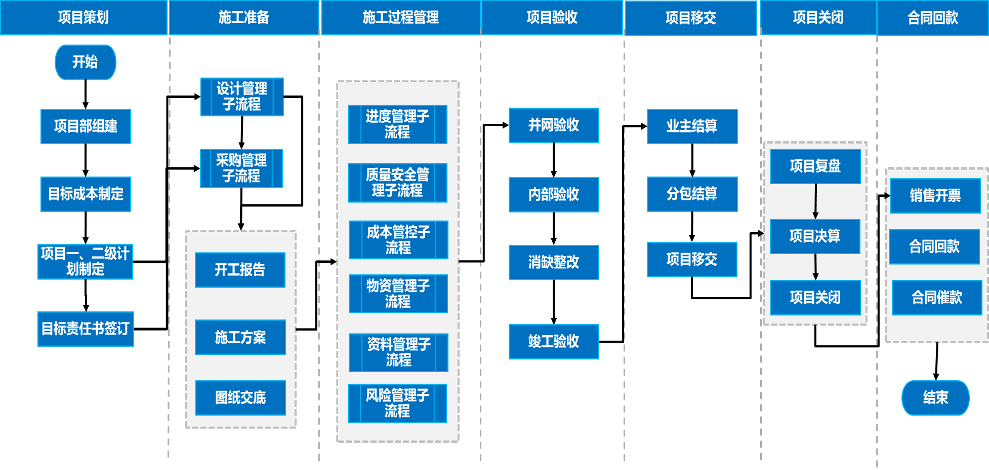 该公司是一家从事光伏工程EPC总承包企业,随着近几年光伏行业的快速发展,该企业结合自身的一些资源优势,成立了光伏工程事业部,主要承接地面光伏电站EPC项目和屋顶分布式光伏电站项目。由于成立时间晚,相应的人员队伍不成熟、相应的管理机制也不健全,项目管理没有进行标准化,总部工程部门管理能力不足严重影响了企业的扩张,企业希望能够快速借鉴其他成熟企业从流程角度推动光伏工程事业部的规范运作,并结合信息化,提升工程交付能力,做强做大该项业务。