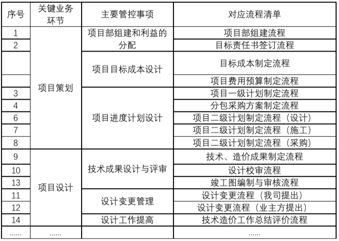 根据该企业的主业务逻辑总图,我们对各环节需要管控事项列出需要建立的流程清单。表5-2-1是该企业流程清单产生过程的样表。