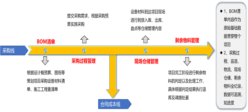 成本要落实管控,具体执行上还需要从物资的采购和管理方面把控,所以又加了一个采购线,见图5-2-5。
