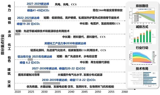 实现中国2030年前碳达峰、2060年碳中和的时间表和路线图: