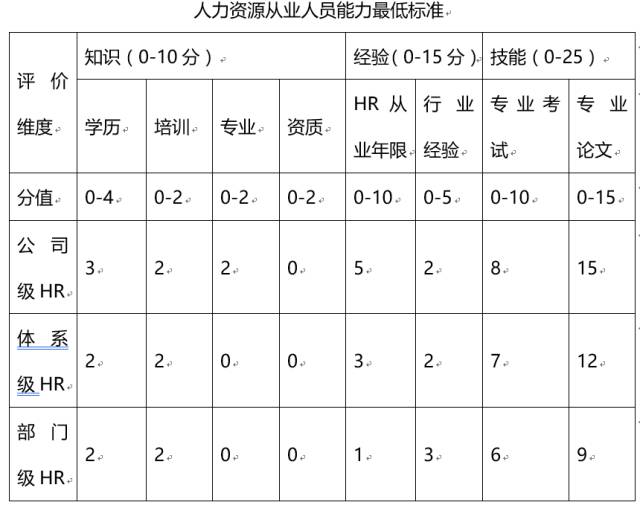 以下是分别按照公司级、体系级、部门级所确定的人力资源从业人员的合格分数线,其中,公司级为37分,体系级为28分,部门级为23分。
