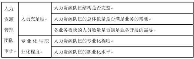 对于企业人力资源管理团队的审计,需要审计两方面的内容,一是人力资源队伍的人员满足度,二是队伍的专业性和职业化程度。