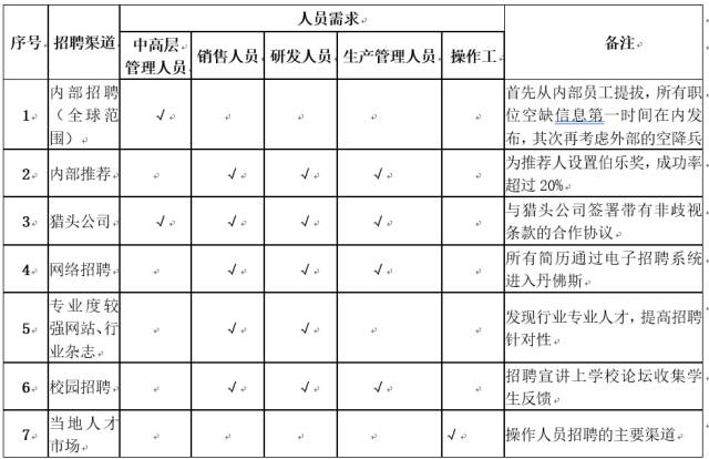 从对丹佛斯的研究中,我们可以发现,其招聘管理具有以下特点: