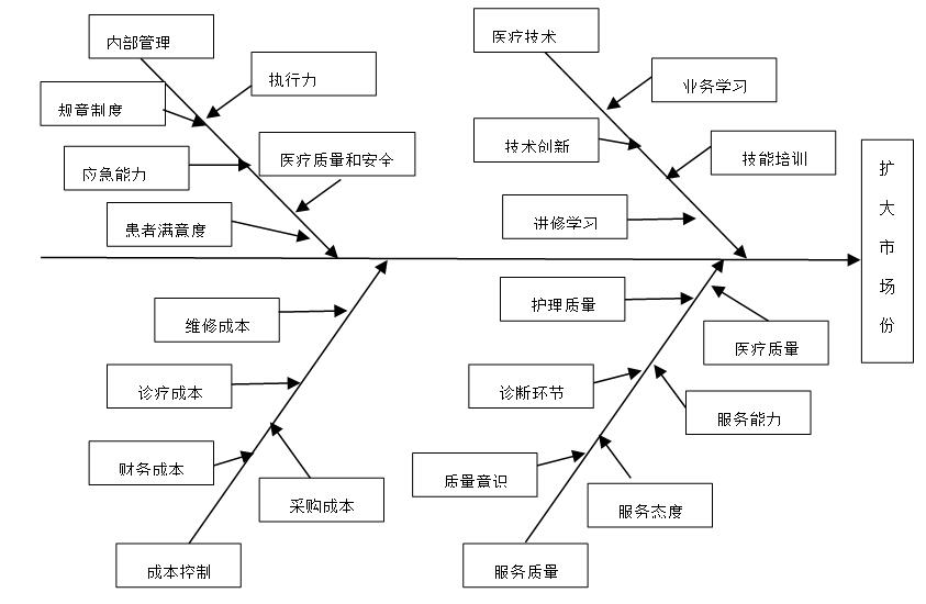 根据医院的战略,采用“鱼骨图”分析的办法进行了战略指标的分解。