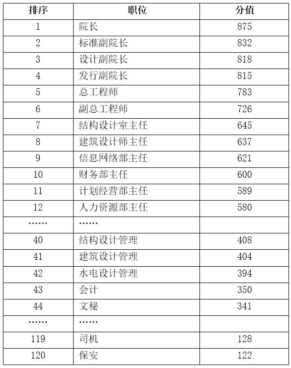 GX建筑设计研究院岗位评价结果(示意)