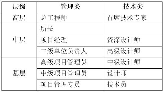 GX建筑设计研究院专业技术人员分层分级表(示意)