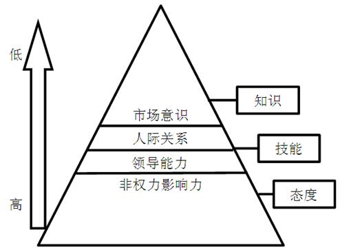 因素四“市场意识”中最重要的是创新与技术应用,其次为授权和制定战略。市场经济条件下,具有战略眼光,不断创新才能利于竞争的不败之地。模型中胜任力的四个方面,对应胜任力理论分析,“态度”位于最基础层面,排第一位,是核心胜任特征,其次是“技能”,只是在此模型中为隐含性的,“市场意识”位于最外层。从冰山模型看,第一层非权力影响力为水下部分的内隐只是最重要,其他能力为外显层面在其后。