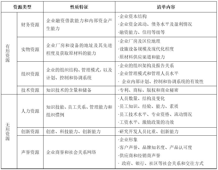 进行企业资源分析的目的不是列出企业资源的数量、种类和品质清单,而是通过分析和判断,找出企业资源的强势和弱势所在,由此确定形成企业核心竞争能力和竞争优势的战略性资源,并围绕这些资源进行持续投资,以提升资源基础,增加竞争资产,减少竞争负债。