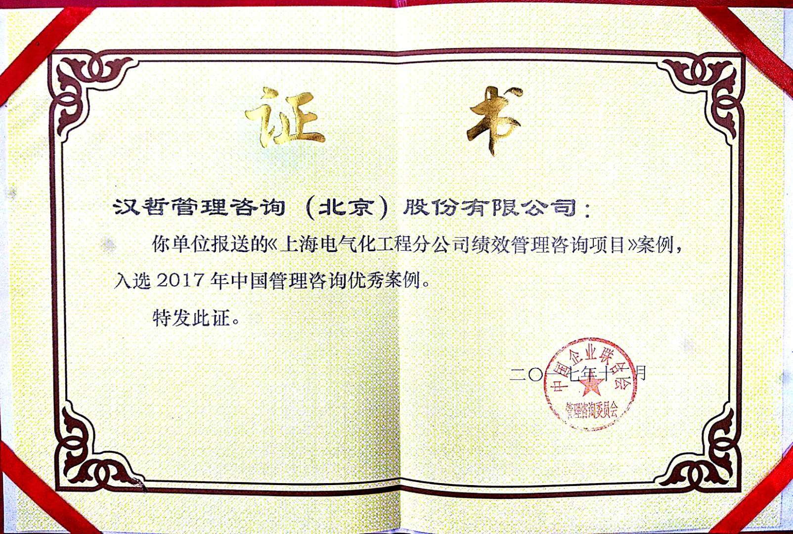 近日接到通知,由伟德国际betvlctor1946管理咨询(北京)股份有限公司完成的中铁电气化局上海分公司绩效管理咨询项目,获得中国管理咨询主管机构-中国企业联合会管理咨询委员会评选的“2017年中国管理咨询优秀案例”。